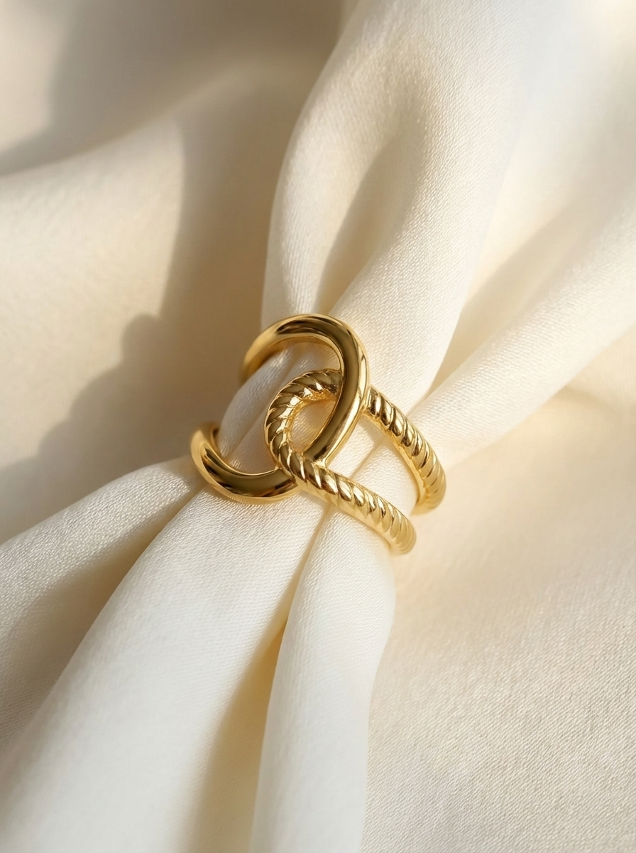 La bague Léana ne cherche pas à en faire trop, elle fait son effet toute seule. Son design minimaliste en deux cercles interconnectés (ou style “knot”) capte l’attention avec subtilité. Réalisée en acier inoxydable, elle est agréable à porter, totalement ajustable et légère, parfaite pour compléter une tenue sans encombrer le poignet. Une bague statement minimaliste, qui combine élégance et confort au quotidien.