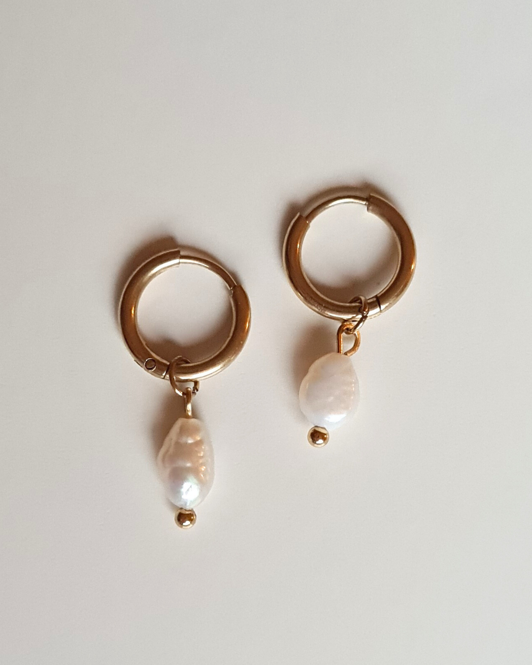 - Design : petit anneau fin de 10 mm + perle d’eau douce pendante.