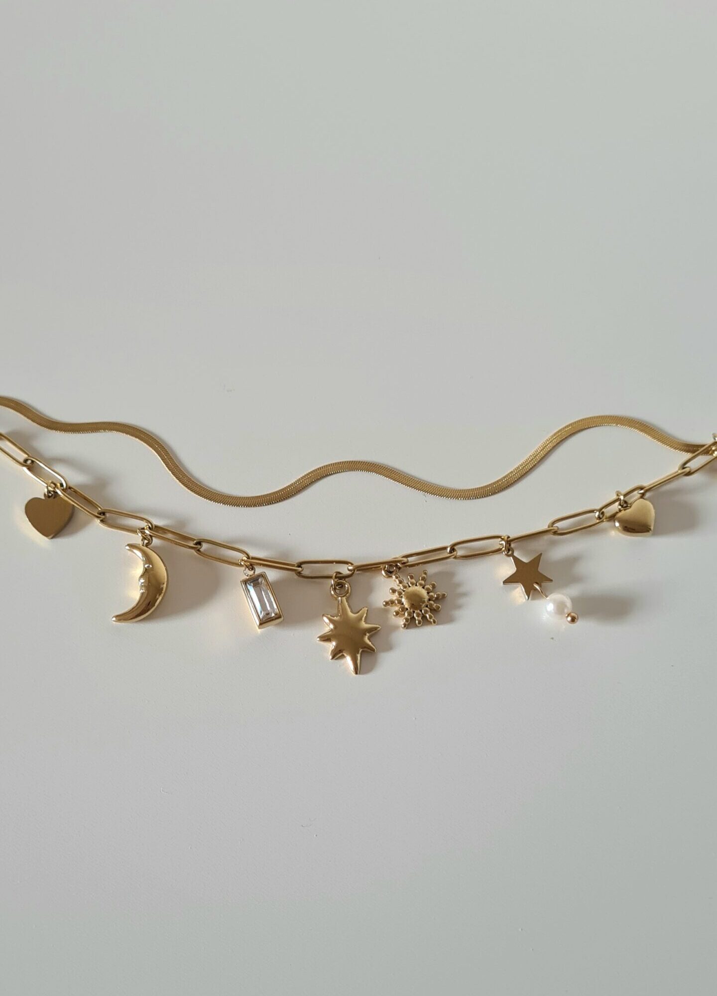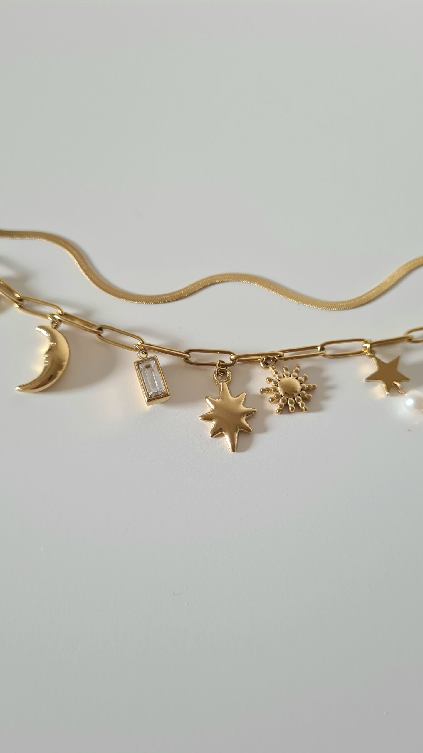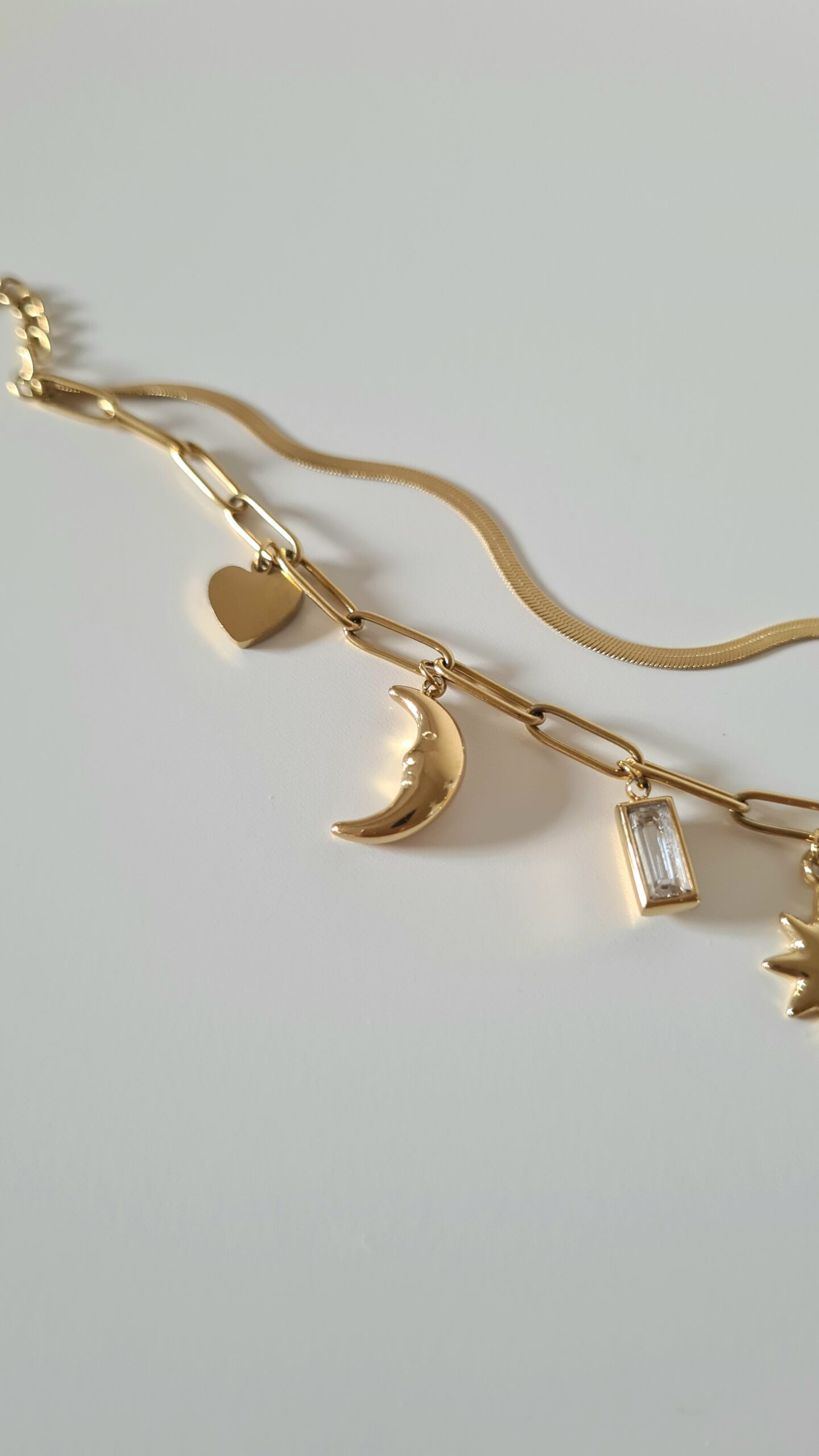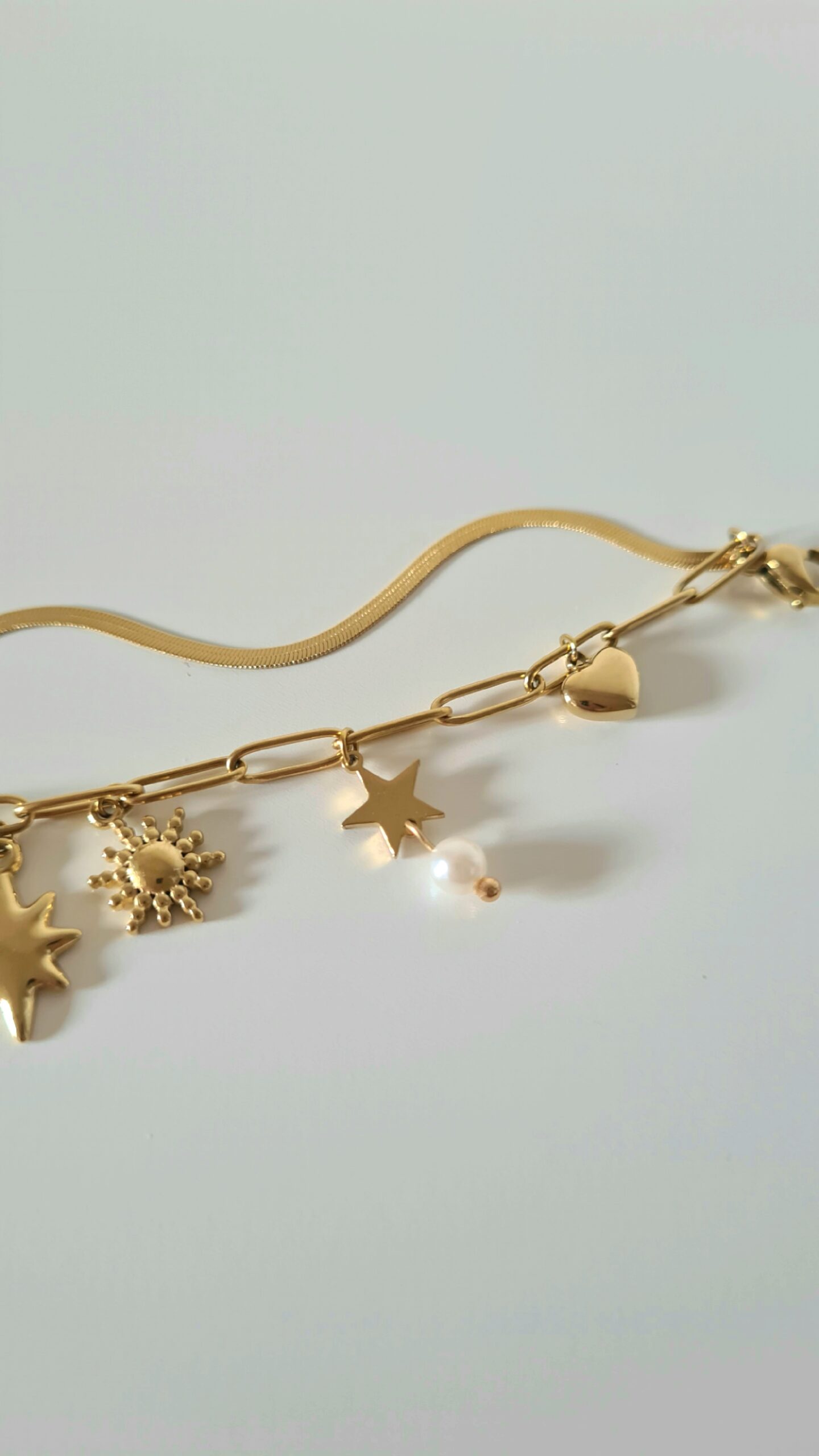 Le bracelet Sélia associe deux styles pour un rendu unique : une chaîne lisse et plate, résolument tendance, et une fine chaîne ornée de pendentifs délicats qui apportent du mouvement et de la brillance. Réalisé en acier inoxydable, il résiste au temps et peut être porté tous les jours sans perdre de son éclat. Un bijou moderne et élégant, idéal pour celles qui aiment les pièces originales mais discrètes.