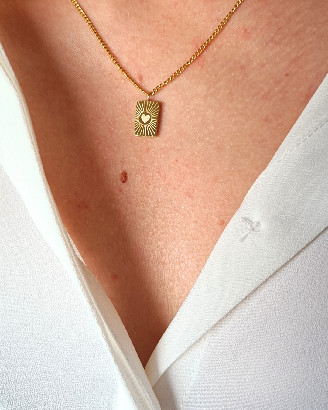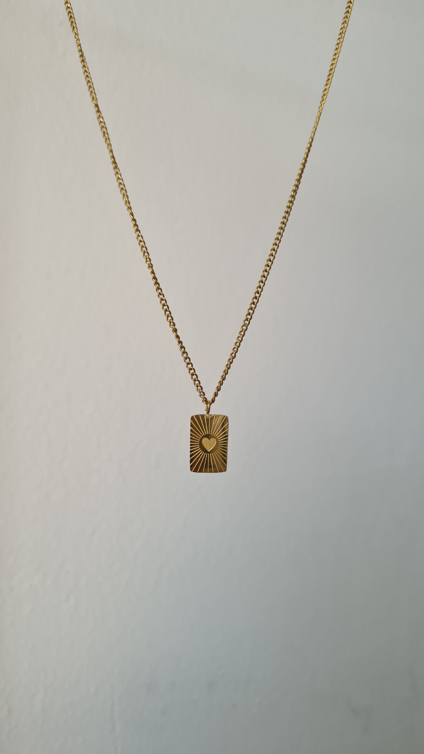 • Chaîne fine avec pendentif rectangle gravé d’un cœur